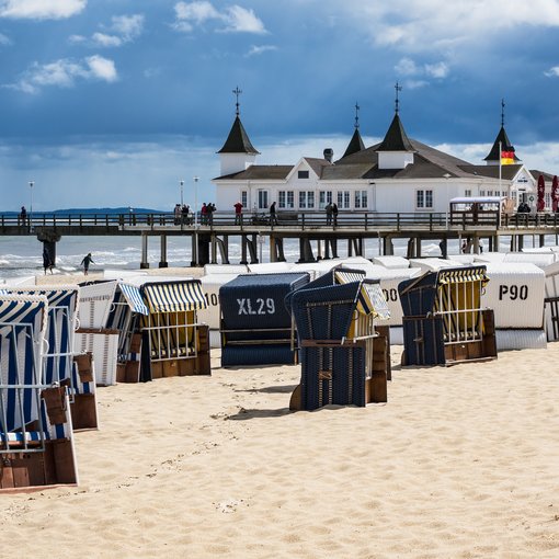 Die Seebrücke Heringsdorf ist mit 508 Metern die längste Seebrücke Deutschlands. Dort finden Sie zahlreiche Geschäfte und Restaurants. Für eine kleine Pause und als beliebtes Fotomotiv dient der XXL-Strandkorb an der Strandpromenade Heringsdorf.