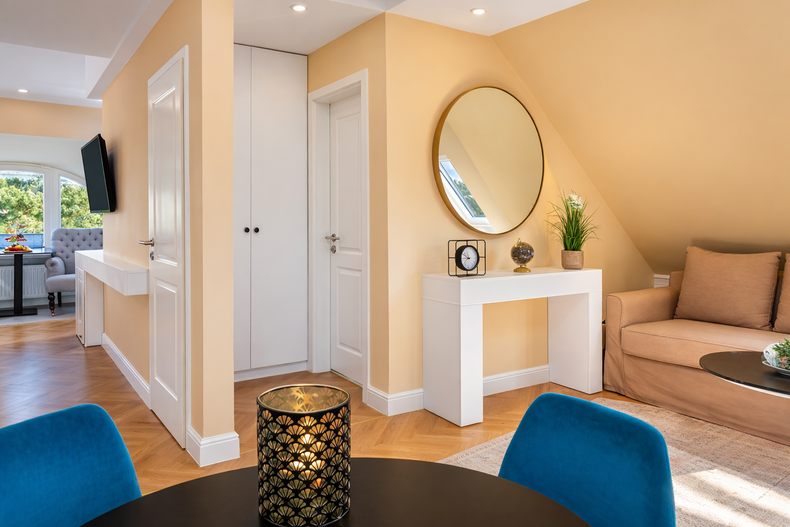 The rooms on the higher floors offer a splendid view over Ahlbeck's rooftops.